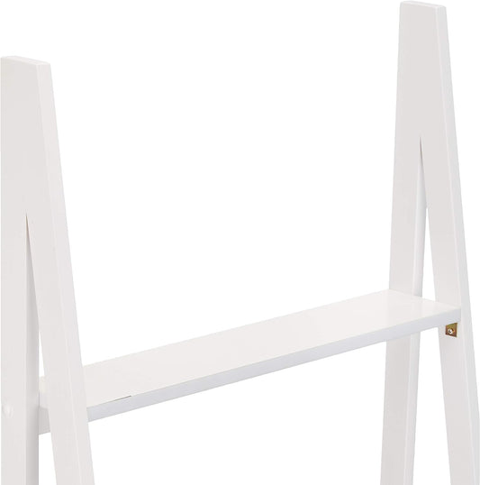 Basics Modern 5-Tier Ladder Bookshelf Organizer, Solid Rubberwood Frame, White, 14 D x 24.8 W x 70.1 H in